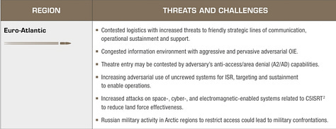 These assessments are an interesting peek into the perceived threats the Army faces in each Theatre, and I would love to go over each one and sort of pick it apart. Perhaps I will do that later this week in another article. I don't want this to be half opinion and half information. I do want to primarily keep this as a summary, as I did before.
