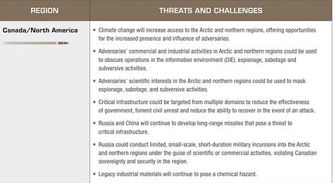 A few thoughts though never hurt anyone. Capstone’s list of threats has a very heavy focus on the asymmetric. This includes the use of civilian infrastructure and operators to test our response capabilities in the Arctic. It acknowledges that commercial and scientific operations can pose a dual-use threat to Canada's Arctic and that our adversaries will target civil infrastructure in an attempt to degrade our response capabilities and turn public perception against getting involved in a broader conflict.