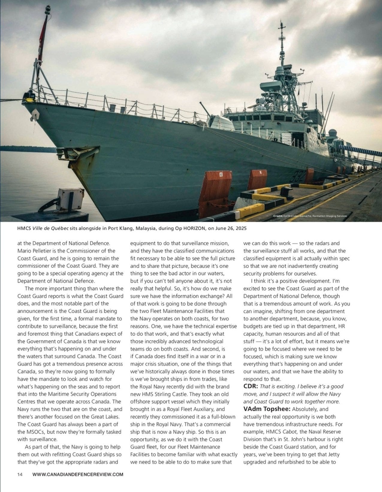 “Today marks an important milestone as the Canadian Coast Guard joins the Department of National Defence. This historic step will strengthen our collaboration, enhance our capabilities, and improve our service to Canadians."