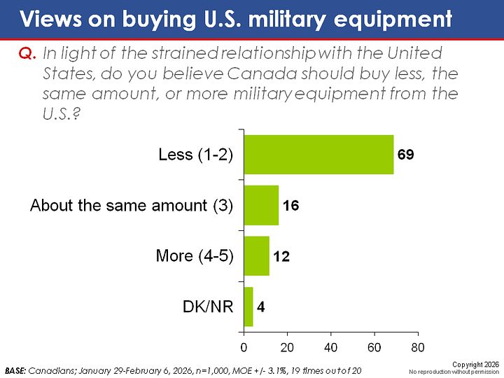 The field dates for this survey are January 29-February 6, 2026. In total, a random sample of 1,000 Canadians aged 18 and over responded to the survey. The margin of error associated with the total sample is +/- 3.1 percentage points, 19 times out of 20. The data tables for this survey are available here. The questionnaire is available here.