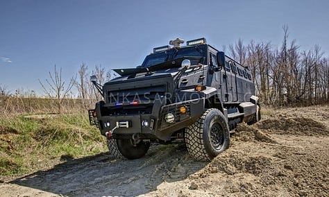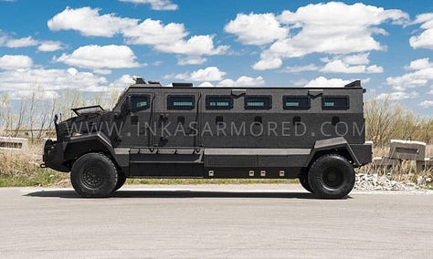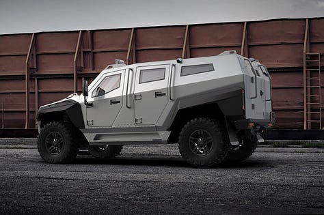 The Admiral came equipped with perimeter gunports, advanced locks, escape hatches, external view cameras, emergency lighting, sirens, and crowd-control systems