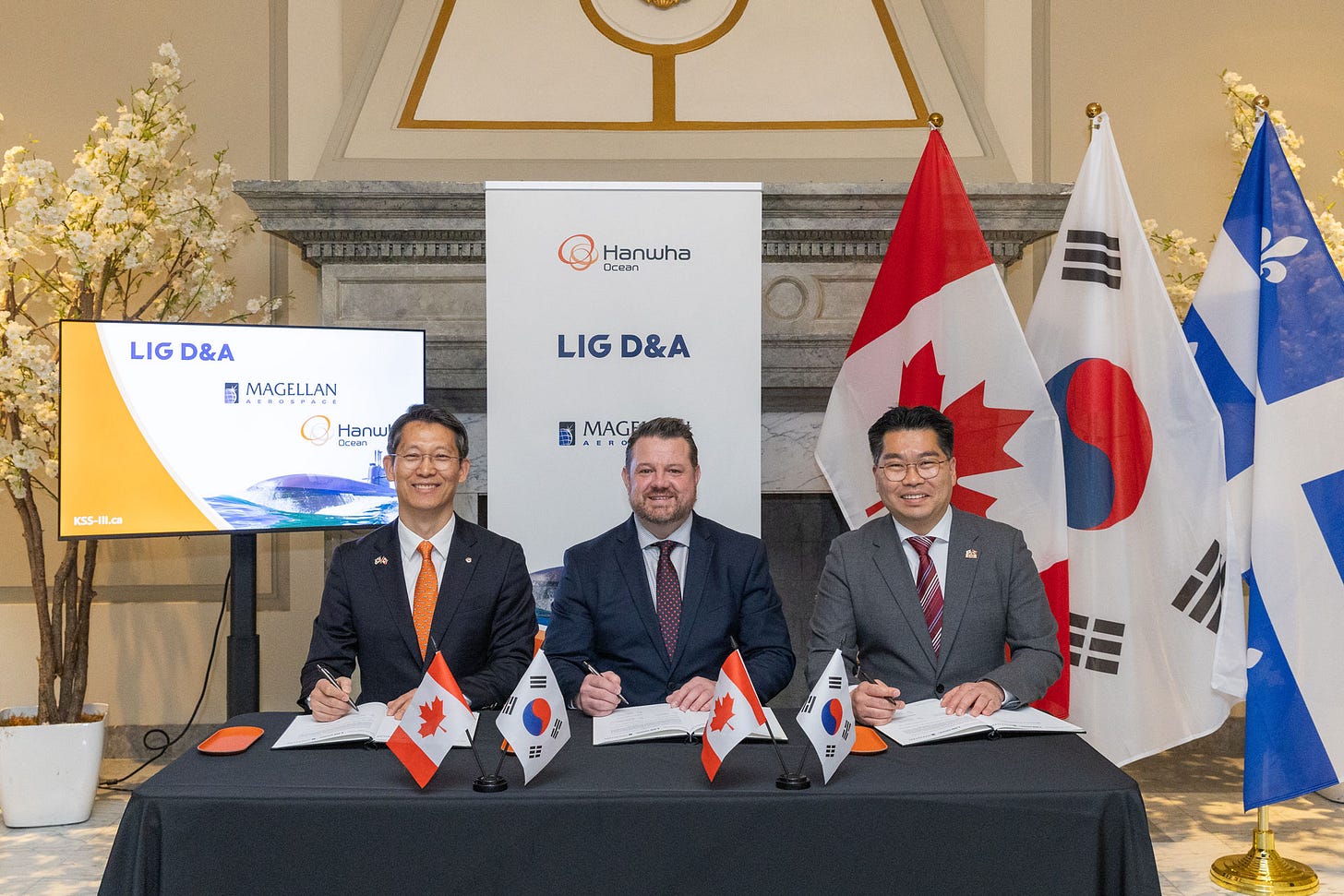LIG Defense & Aerospace (D&A), Magellan Aerospace Corporation (Magellan), and Hanwha Ocean have signed a Memorandum of Understanding to seek collaboration under the Canadian Patrol Submarine Project (CPSP), with a focus on strengthening Canada-based capabilities across underwater weapon systems and their lifecycle support.