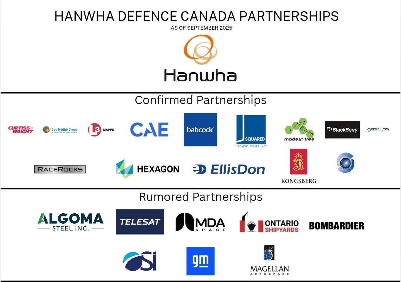 As of right now, Hanwha has signed MOUs or agreements with over a dozen Canadian companies, including Babcock, CAE, Modest Tree, Des Nedhe Group, J Squared, Gastops, Curtiss-Wright Indal, Kongsberg, Paradigm Shift, Hexagon, BlackBerry, L3Harris, RaceRocks, and Ellis Don regarding both CPSP and land projects.