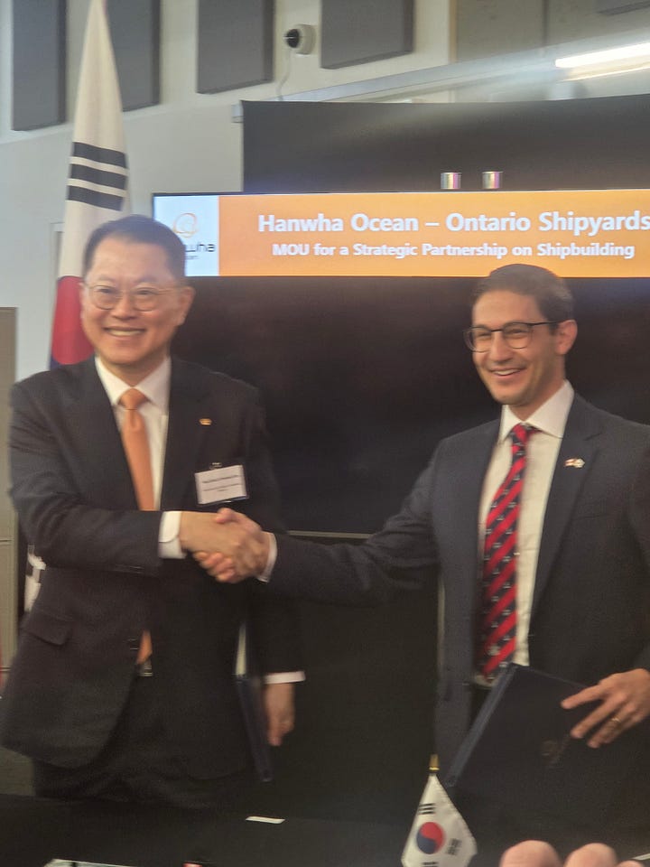 As part of this cooperation, Hanwha Ocean will provide support to the design and construction for a Training and Recruitment vessel that Ontario Shipyards will begin building in 2026, serving as a practical demonstration of next-generation shipbuilding capability in the province.