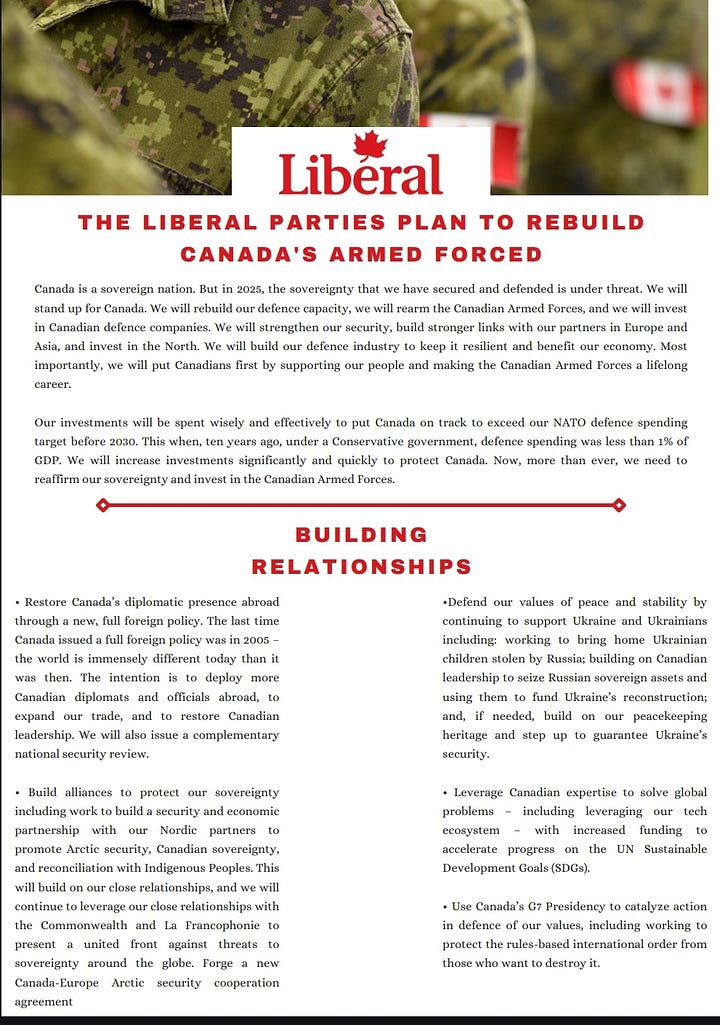 Same promises that have been given for years, wrapped in the same language on needing to do more. While I have praised the Carney-led Liberals for prioritizing defence in the brief time he has been PM, I couldn't help but feel that we were edging towards a fairly lax platform.