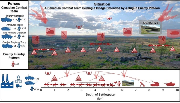 The preliminary look at the “close fight” (0-40km) primarily suggests that without access to a healthy, diverse supply of autonomous systems, the CA can expect to take major casualties without any guarantee of success. The goal here is simple: reduce the risk to human life by inserting autonomous systems into the most dangerous tasks.