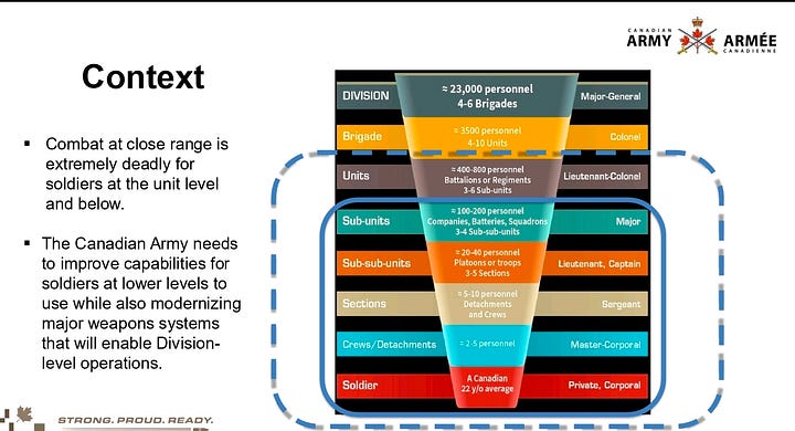 The Canadian Army (CA) is currently built for ‘contribution’ rather than fighting and surviving in major combat operations. The Army has a critical gap in its “Division-Level Warfighting” capability. The current force structure, reliant on unit-level contributions and built around sustaining the Battlegroup, is insufficient for the modern battlespace.