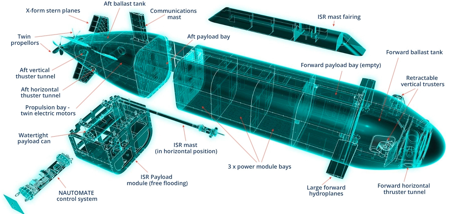 These payloads will likely include various sonars, electro-optical/infra-red surveillance systems, towed array sensors, and the ability to deploy smaller AUV or Remotely Operated Underwater Vehicles (ROUV). As far as I know, there's no immediate discussion on arming them.