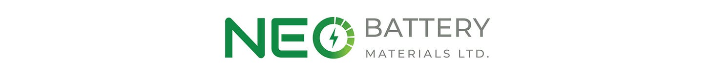 NEO Battery Materials is a Canadian battery technology company focused on developing and producing silicon-enhanced lithium-ion batteries in drones, unmanned aerial vehicles (UAV), robotics, unmanned systems, electronics, electric vehicles, and energy storage systems for AI data centers. With a patent-protected, low-cost manufacturing process, NEO Battery enables longer-running and ultra-fast charging batteries and provides end-to-end battery solutions from materials selection, cell architecture, and process optimization. The Company aims to be a globally-leading producer of high-performance lithium-ion battery components and materials, building a secure, robust battery supply chain in North America.