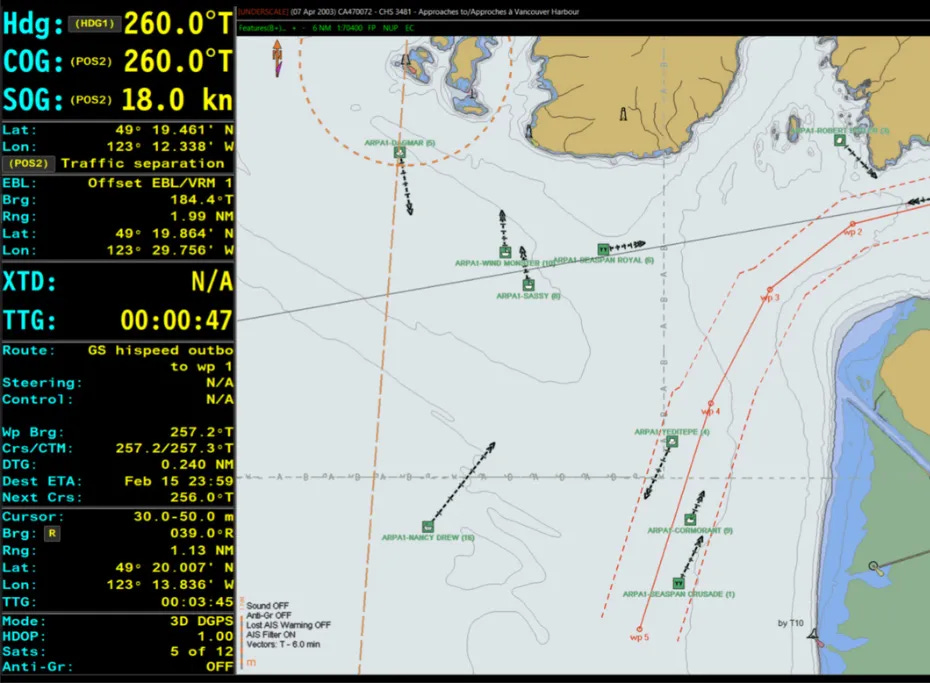 CADA has undergone extensive sea trials, successfully demonstrating the integration of real world sensor data under challenging operational conditions. These trials marked an important milestone in validating the system’s decision support capabilities across a wide range of realistic scenarios, including high traffic areas, restricted waters, and multiple COLREGs encounters.