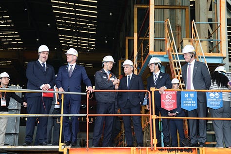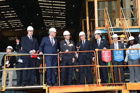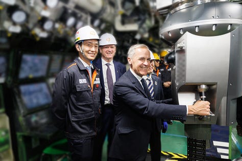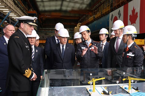 Today, Hanwha Ocean was extremely pleased to host the Right Honourable Mark Carney, Prime Minister of Canada, the Honourable David McGuinty, Canada’s Minister of National Defence, and Vice-Admiral Angus Topshee, Commander of the Royal Canadian Navy, at our shipyard in Geoje, South Korea. They were joined by Republic of Korea Prime Minister Kim Min-Seok, Vice Minister of Defence Lee Doo-Hee, Deputy Director of the Defence Acquisition Programme Administration Kang Hwan-Seok as well as Vice Chairman of Hanwha Group Kim Dong-Kwan.
