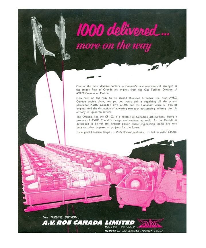 Orenda Engines advertisement featuring the TR5 Orenda engine. A sadder loss than the Arrow for myself.