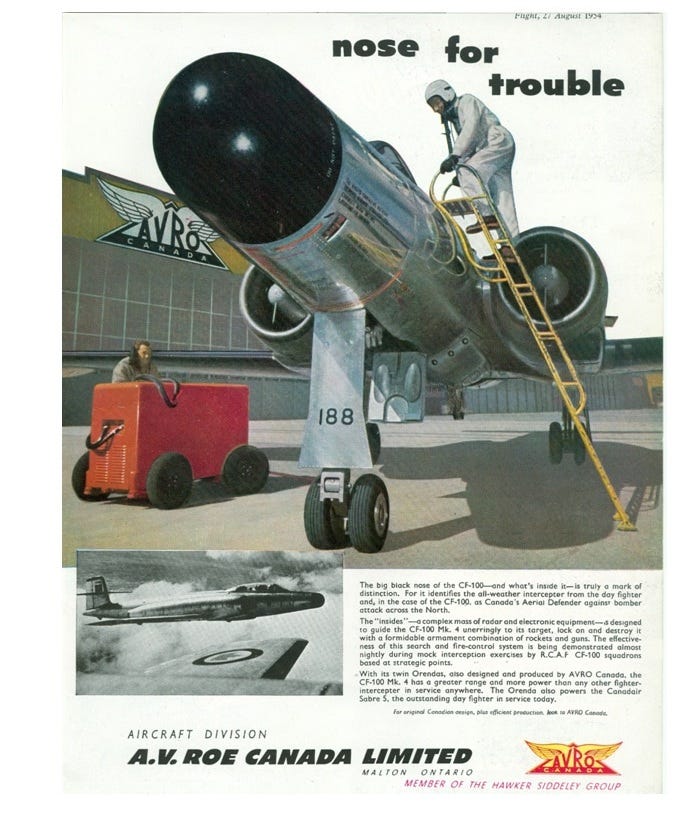 A third Avro advertisement, this time focused of the CF-100 Canuck, Canada’s often forgotten first fighter jet.