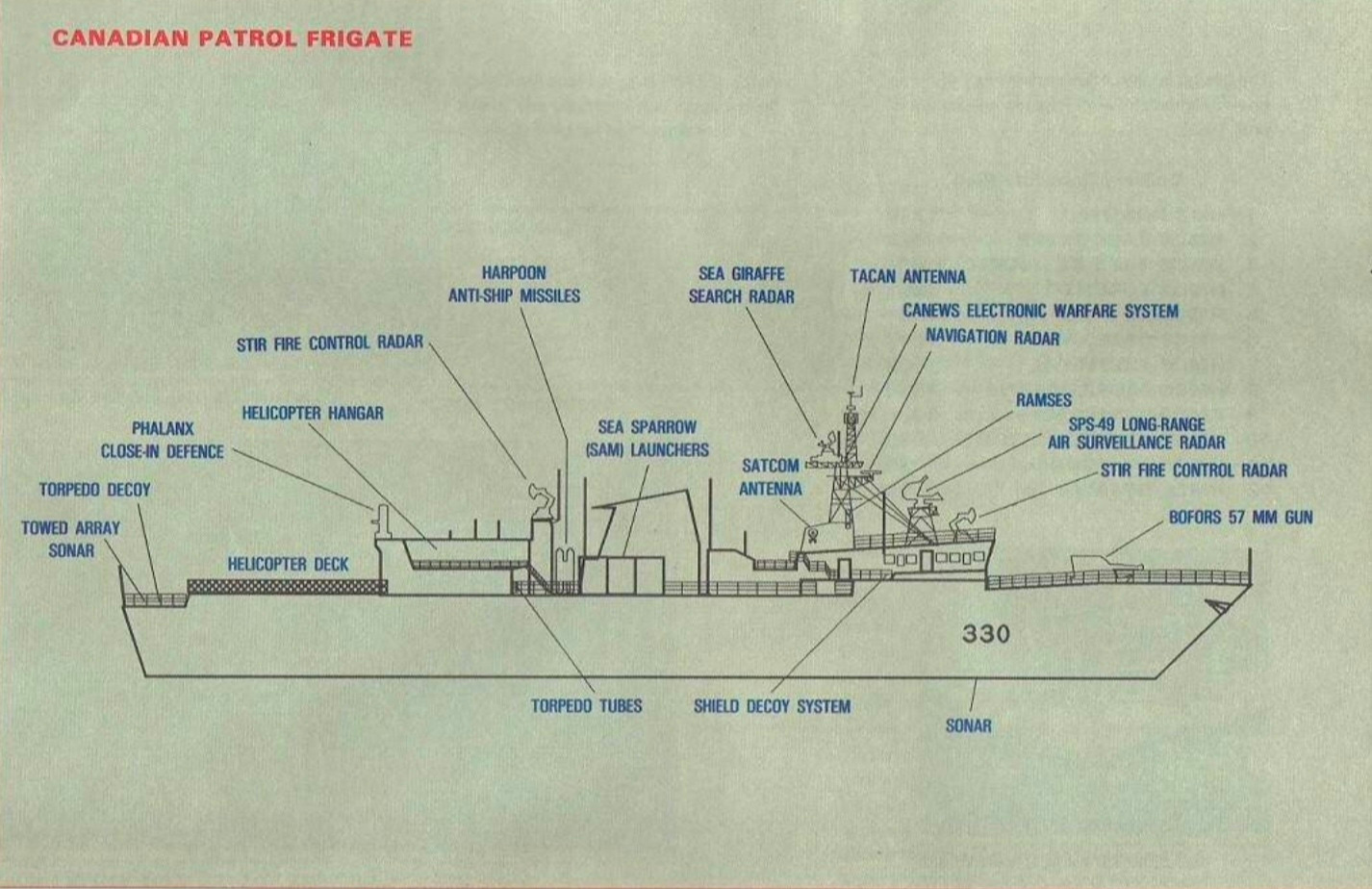 An early infographic for the Canadian Patrol Frigate, now known as the Halifax-class