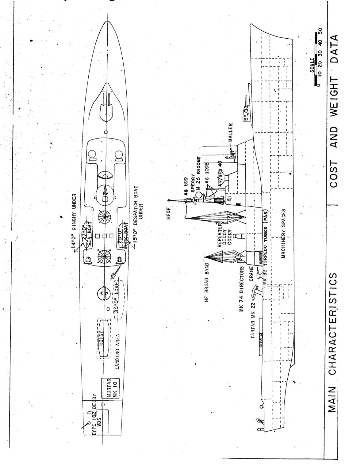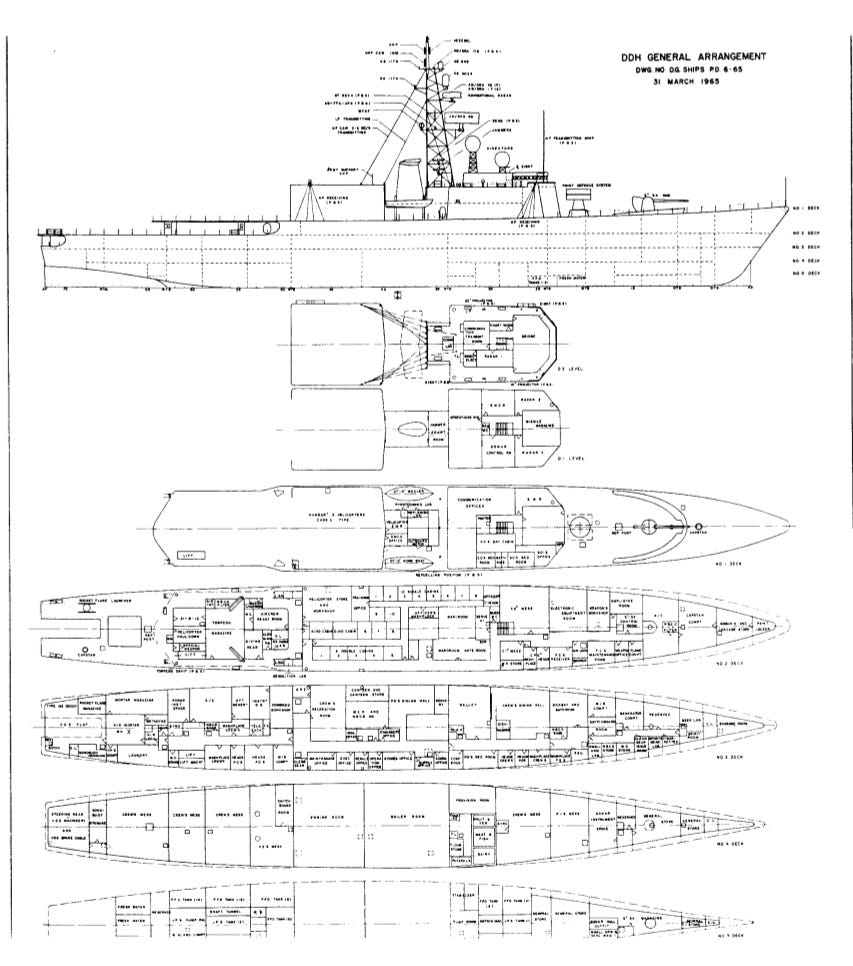 Early schematic of the DDH 280, also known as the Iroquois-class Destroyers