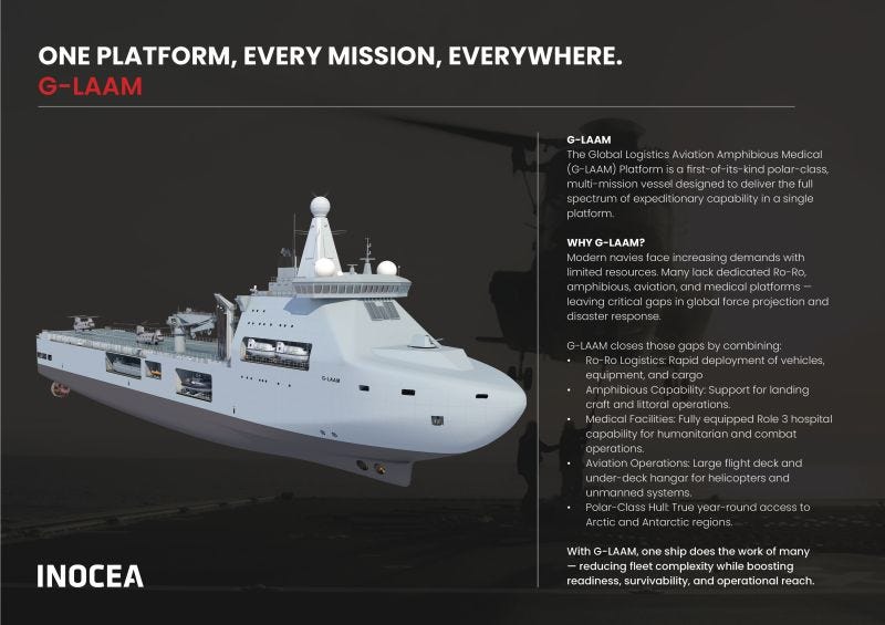 GLAAM fits almost all the requirements that the AMB will likely list out. It maintains the RAS, HADR, and amphibious capabilities that the AMB has set for itself. It features a forward repair capability, dedicated container space (a cute nice-to-have), and an above-average Role III hospital compared to similar vessels. The only issue, as above, is I don't know the range or endurance, so I can't speak there.