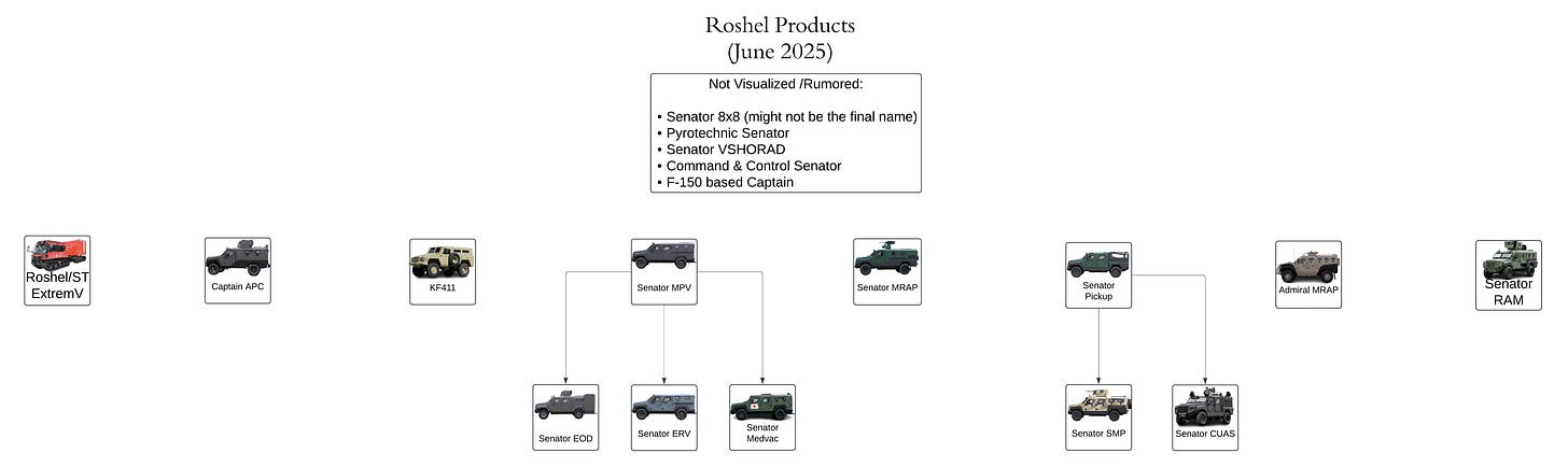 A reminder that we do have a Roshel chart for easy reference! Mainly because not every Roshel product is on the website yet. Its a good visualization for a company that, just four years ago, only really had the Senator Gen I in its lineup.