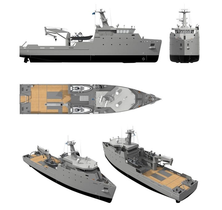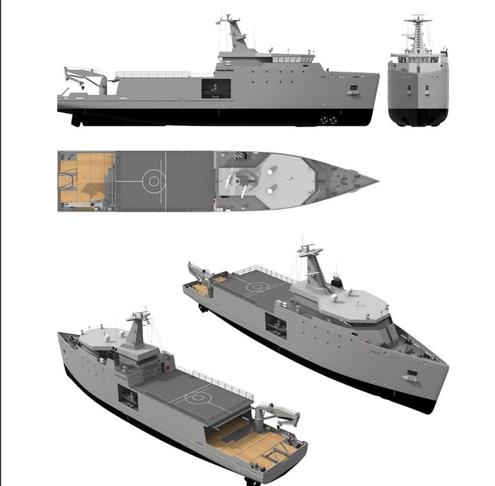 On a smaller side, a vessel like Damen MRAV3600 or the larger OOSV could also provide a complement to the larger MRNSV.