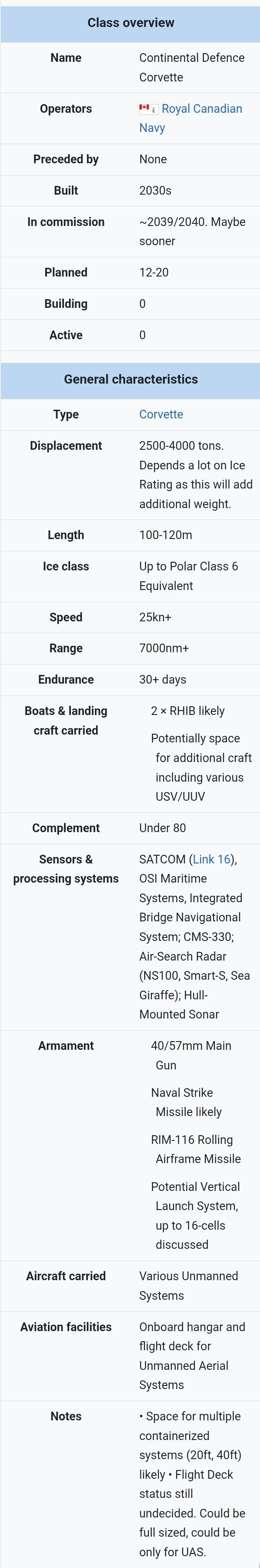 Updating the Continental Defence Corvette Infobox + Clarifying recent reporting