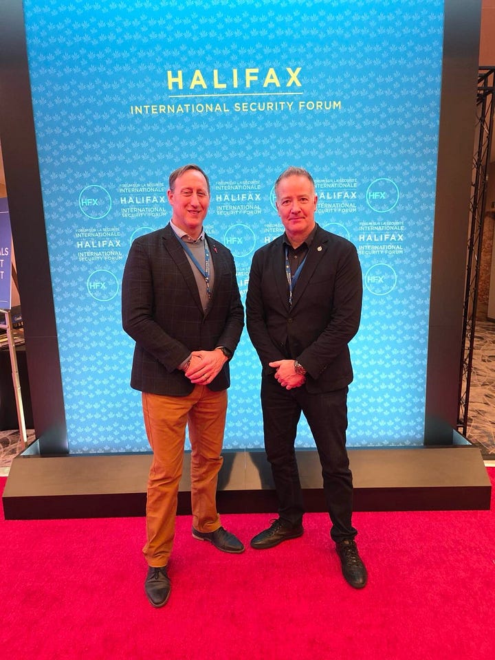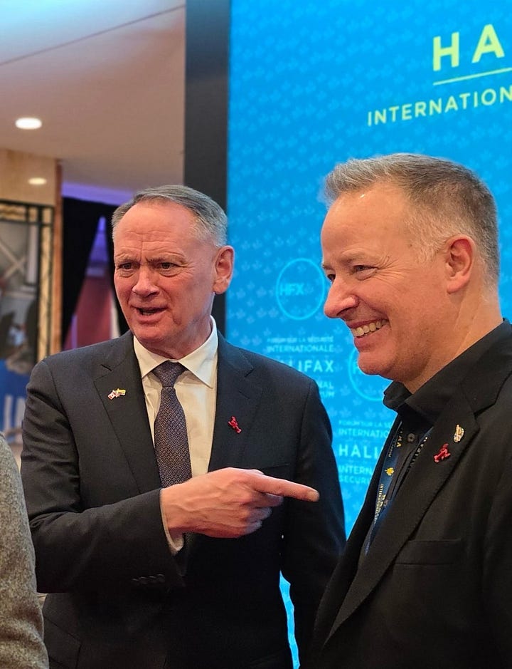 He was with everyone else at the Halifax International Security Forum! No statement today, but we did get my new favourite photo of all time. We need more finger pointing poses.